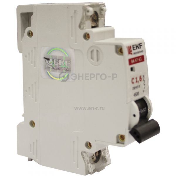 Автомат ВА 47-63 6 кА выполнен в корпусе стандартного автоматического выключателя ВА 47-63 EKF 4,5 кА с возможностью опломбировки, но с внесением значительных технологических изменений во внутреннее устройство изделия и сам корпус.