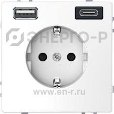 Розетка Merten D-Life 1-ая с/з с c зарядным устройством USB A+C 3 A (белая)