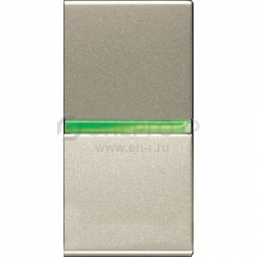 Механизм 1-клавишного одноклавишного 1-полюсного выключателя с клавишей с контрольной подсветкой, 1-модульный, серия Zenit, цвет шампань