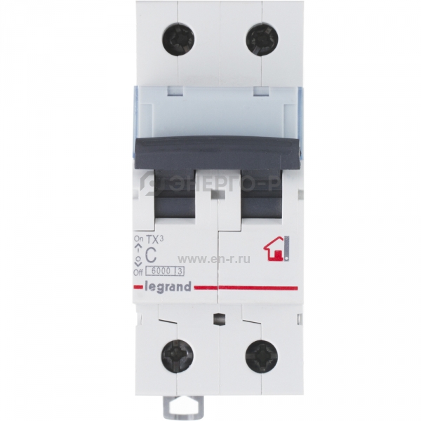 Автоматический выключатель двухполюсный (двухфазный) 2 полюсный хар-ка C (характеристика, кривая С) серии TX3.