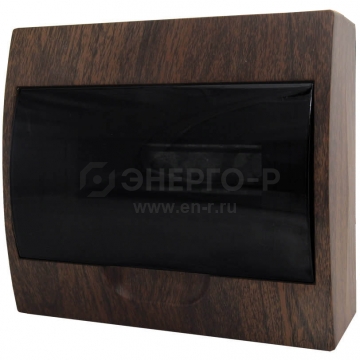 Пластиковый щиток с дымчатой прозрачной дверцей (дверью) навесной настенный накладной, наружной установки на 10 модулей 10М под темное (тёмное) дерево "бук"