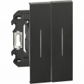 Переключатель 2х клавишный 10А с подсветкой автоматические клеммы 2 модуля. LIVING NOW. (чёрный)