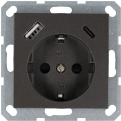 Розетка с/з со шторками 16A c USB A+C 25W (Мокко)