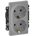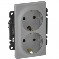 Розетка двойная 2К+З Valena Life 16А 250В~, защ. шт. безвинт. зажимы (алюминий)