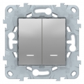 Выключатель Unica New 2-клавишный, 2 модуля, с подсветкой, 2 х сх. 1а (алюминий)