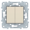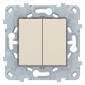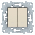 Выключатель Unica New 2-клавишный, 2 модуля, с подсветкой, 2 х сх. 1а (бежевый)