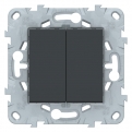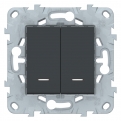 Выключатель Unica New 2-клавишный, 2 модуля, с подсветкой, 2 х сх. 1а (антрацит)