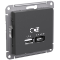 Розетка AtlasDesign USB А+С, 5В/2,4 А, 2х5В/1,2 А, механизм (базальт)