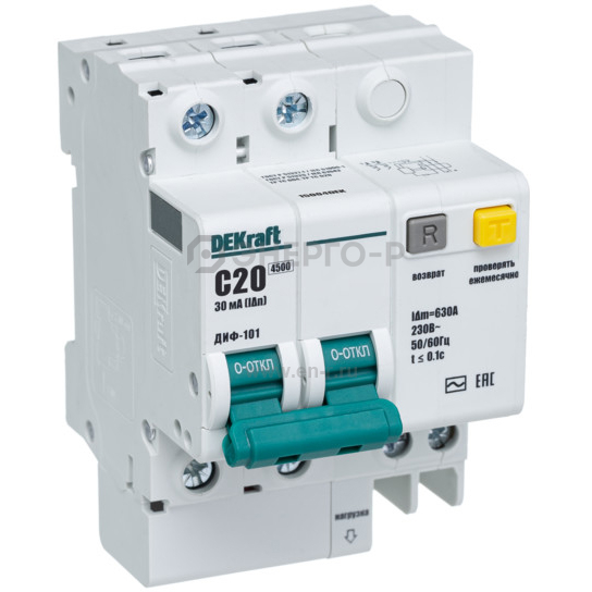 Выключатель автоматический дифференциальный (Автоматический выключатель дифференциального тока АВДТ) 2п 20А 30мА тип AC С 4.5кА ДИФ-101