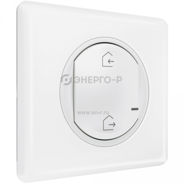 Главный выключатель "Я дома/Я вне дома" позволяет управлять  освещением, рольставнями и умными розетки Вашей системы домашнего комфорта Legrand.