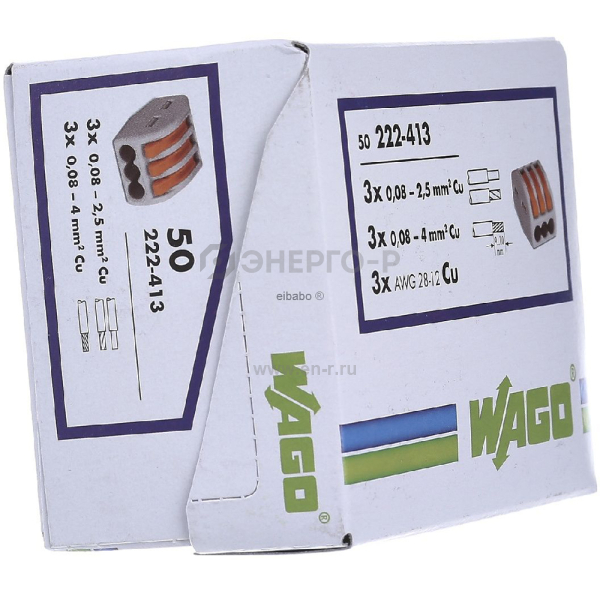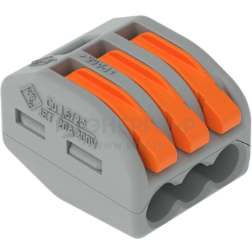 Зажим 222-413 безвинтовой 3х(0,08-4,0) кв.мм для медного провода