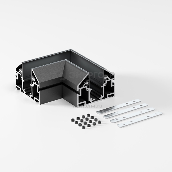 Коннектор угловой внутренний черный для шинопровода в натяжной потолок Slim Magnetic. Служит для соединения шинопроводов в натяжной потолок с декоративными вставками в одной плоскости под прямым углом 90°.