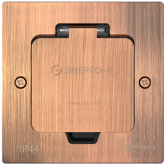 Лючок MultiDeS с розеткой 2К+З 16А/250В IP44 с монтажной коробкой для стены фальшпола стола Медь тип MDK21