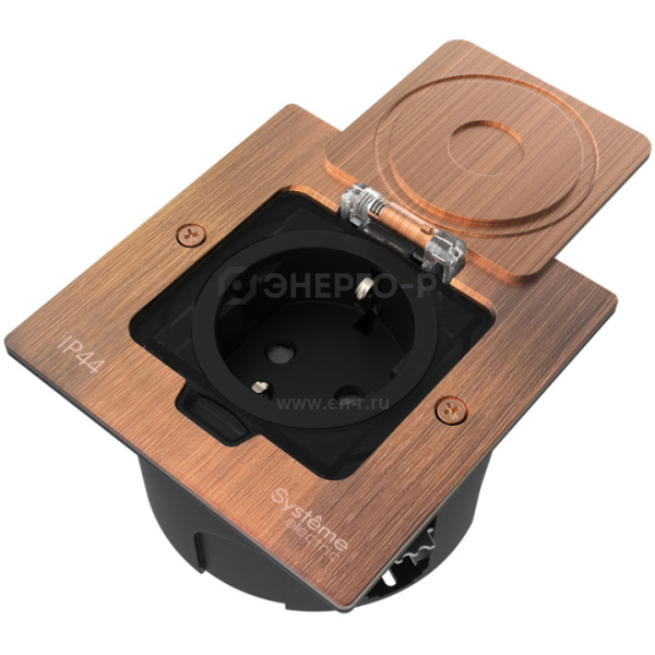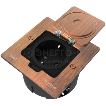 Лючок с розеткой 2К+З, 16А/250В, IP44 с коробкой д/стены,фальшпола,стола Медь, тип MDK21 MultiDesk