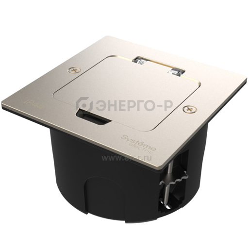 Лючок MultiDeS с розеткой 2К+З 16А/250В IP44 с монтажной коробкой для стены фальшпола стола Никель тип MDK21