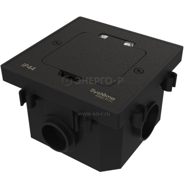 Лючок с розеткой 2К+З, 16А/250В, IP44 с коробкой для бетон.полов ЧЁРНЫЙ матовый тип MDK21 MultiDesk