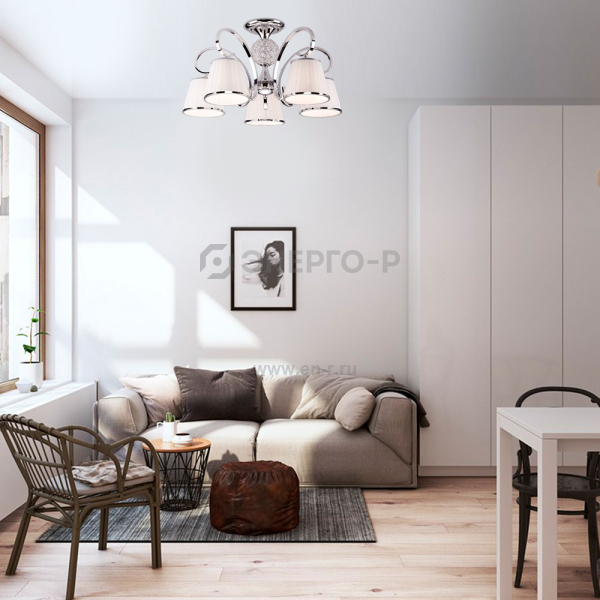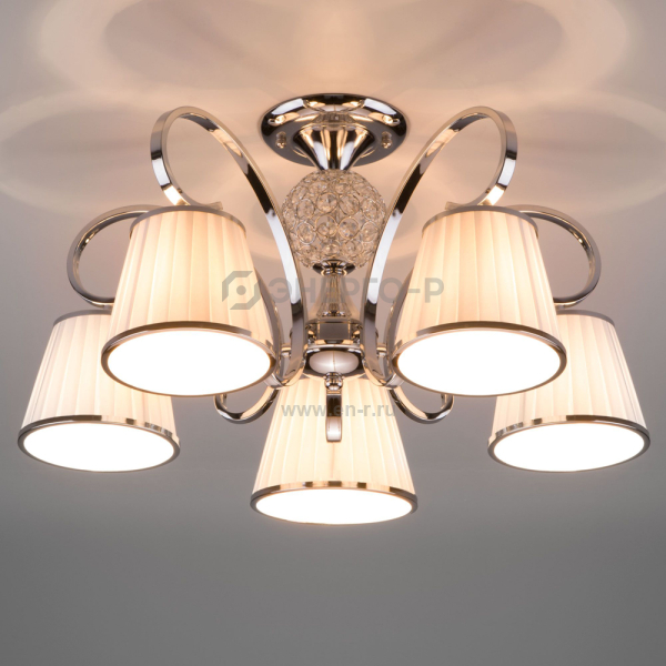 Потолочная люстра с абажурами 60088/5 хром предназначена для создания основного освещения в современных и классических интерьерах, подходит для различных типов помещений: гостиная, спальня и рассчитана на площадь освещения 14м².