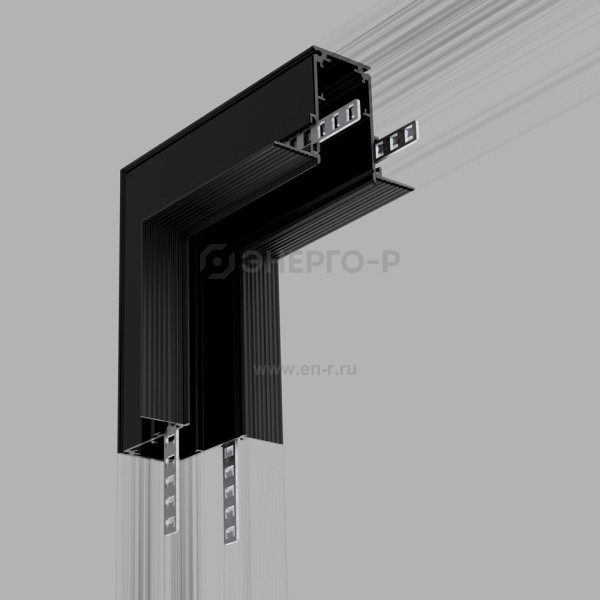 Коннектор угловой черный для встаиваемого шинопровода Slim Magnetic. Служит для соединения встраиваемых шинопроводов в двух плоскостях под прямым углом 90°.