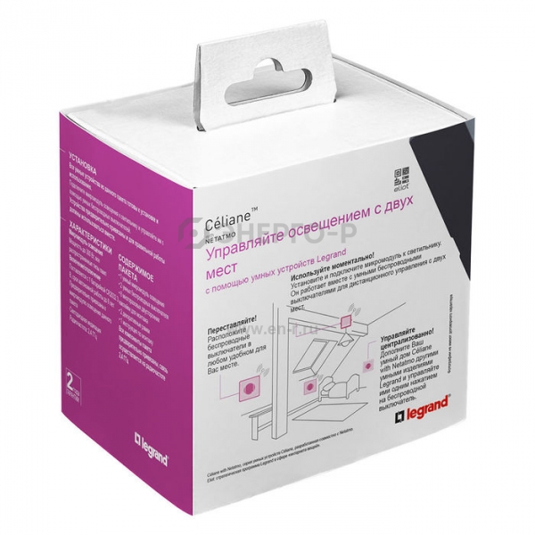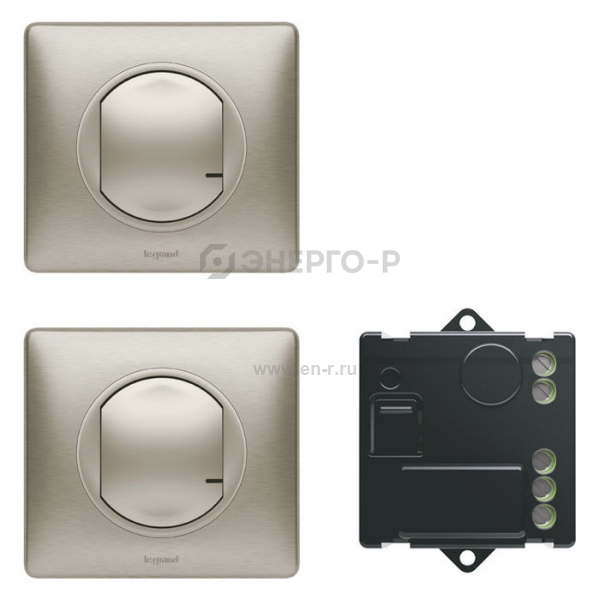 Пакет управления освещением с двух мест состоит из элементов системы домашнего комфорта Legrand. Для использования всех возможностей системы необходимо купить стартовый пакет умного дома.