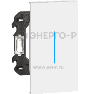 Выключатель/переключатель одноклавишный на 2 направления(проходной) с подсветкой синего цвета 10А автоматические клеммы 2 модуля. Цвет Белый. Bticino серия Living Now. K4702+K4003M2A+H4743/230B+KW01M2