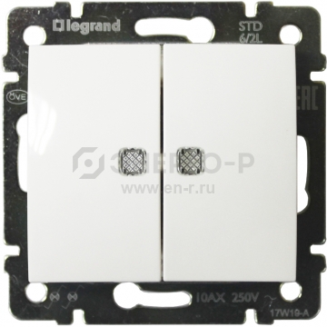 Переключатель Valena на два напр двухклавишный с подсв. 10A (белый)