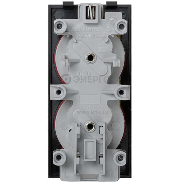 Connect Розетка двойная с заземлением 16А 250В CIMA-модуль 52x108 мм SC графит + красный