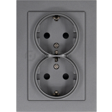 Розетка Schuko двойная с защитными шторками 16A 250V~ 2P+T, цвет Алюминий