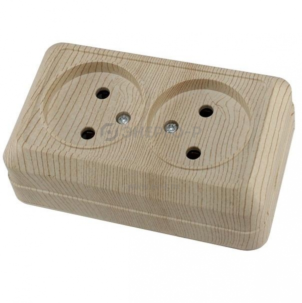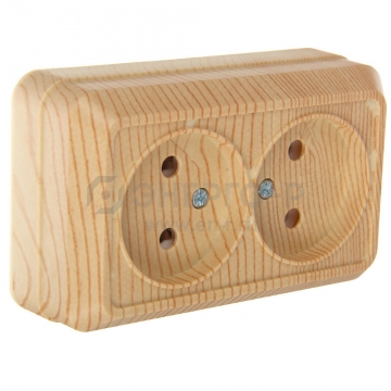 Розетка "Ладога" двойная 2П без заземления открытой установки IP20 10А (сосна) под светлое дерево