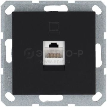 Розетка компьютерная 1-м RJ45 IP20 кат. 5E механизм черн. матов. soft touch Jasmart G6105PB