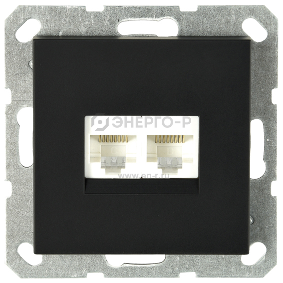 Розетка двойная компьютерная RJ45+RJ45 категория 6 механизм цвета черный матовый