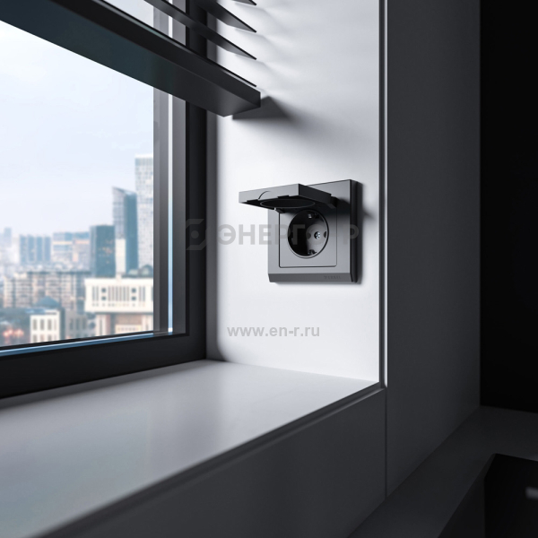 Розетка влагозащ. с зазем. с защит. крышкой и шторками N (графит матовый) a069592