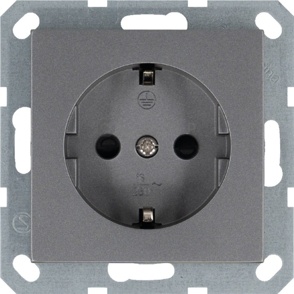 Розетка 1-м Shuko 16А IP20 с заземл. защ. шторки механизм алюм. Jasmart G5501S