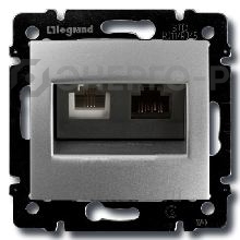 Розетка Валена телефонная компьютерная (телефон/компьютер) информационная 2-ая двойная алюминиевая серебристая