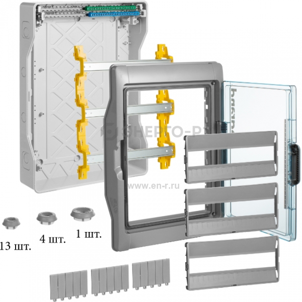 Комплектация: шины N и PE, комплект сальников, этикетки, заглушки для лицевых панелей