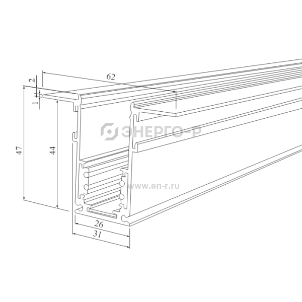 Шинопровод встраиваемый черный 2 м 62х47 мм Slim Magnetic
