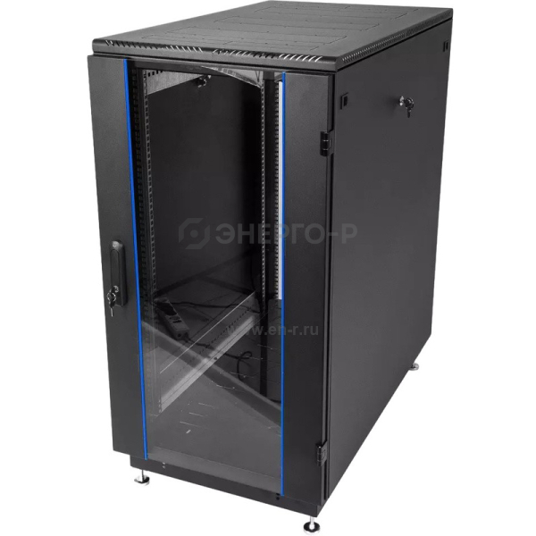Шкаф телекоммуникационный напольный 18U (600х600) дверь стекло черный