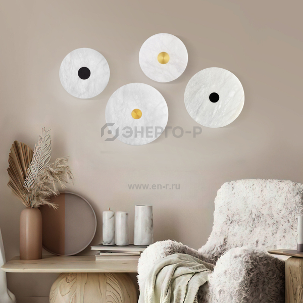 Слияние практичности и роскоши отражается в коллекции Thasos. Настенный светильник выполнен в форме диска из мрамора с активными прожилками светло-серого и тепло-коричневого цвета. Особенность мрамора в его индивидуальности. Каждый рисунок уникален, благодаря чему светильники Thasos являются самобытными. Источником света служат LED светодиоды с мощностью 13 Вт и цветовой температурой 3000 К, что создает атмосферу теплого минимализма. Коллекция станет украшением любого современного интерьера, добавит ему природной эстетики и создаст эффектные световые акценты на стенах.
