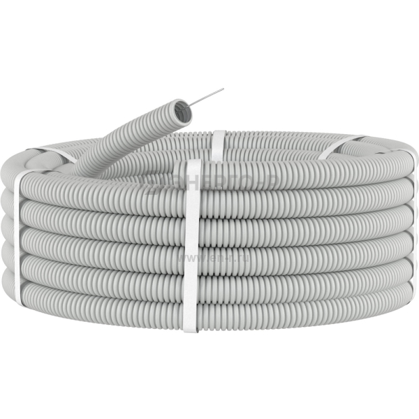 Труба гофрированная ПВХ 25 мм с протяжкой легкая серая (25м)