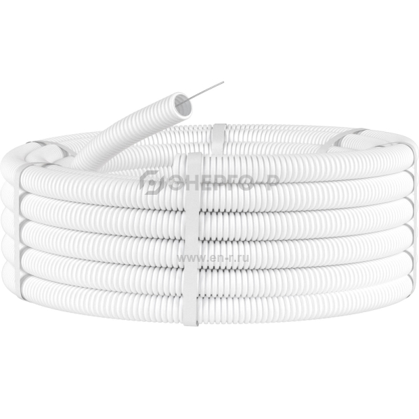 Труба ПЛЛ гибкая гофрированная не содержит галогенов 40мм ПВ-0 с протяжкой (20м) белая