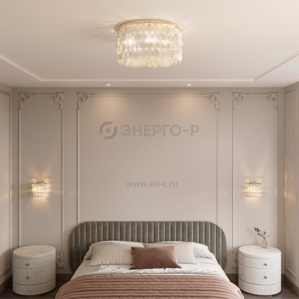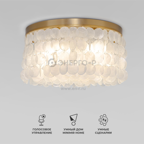 Потолочный светильник с перламутром 60084/5 латунь/перламутр Smart на 5 рожков предназначен для создания основного освещения в современных и классических интерьерах, подходит для различных типов помещений и рассчитан на площадь освещения 8 м².