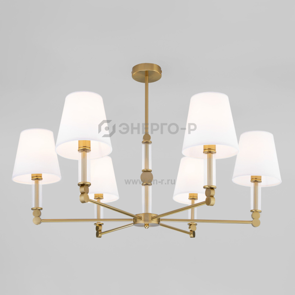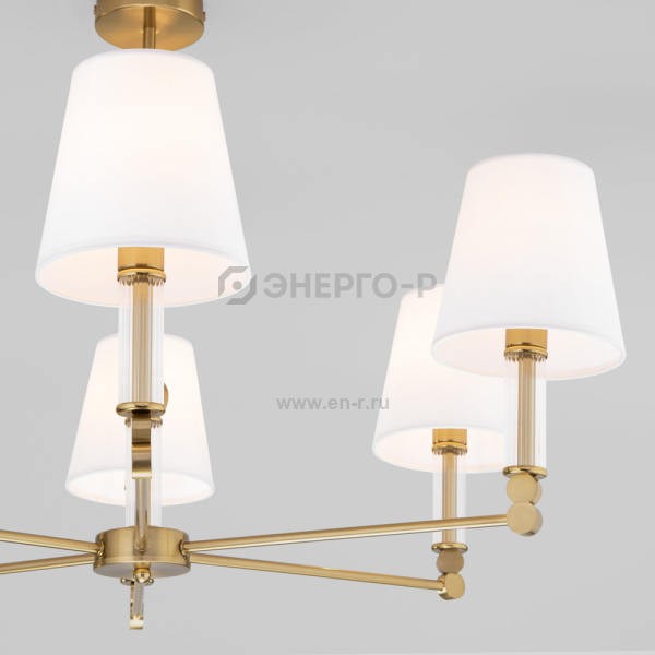 Элегантная люстра Conso соединяет в себе изысканный прованс и аристократичность. В дизайне потолочного светильника использованы шесть изящных тканевых абажуров, дающих мягкое рассеянное свечение, и утонченный декор арматуры цвета латунь. Основания плафонов украшают вставки из прозрачного стекла. В модели используются сменные лампы с цоколем E14. Классический потолочный светильник Conso не только наполнит пространство светом, но добавит в интерьер умеренную торжественность.
