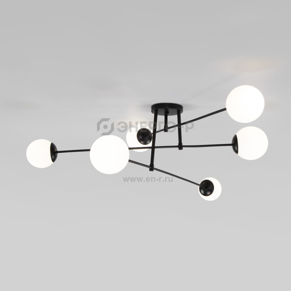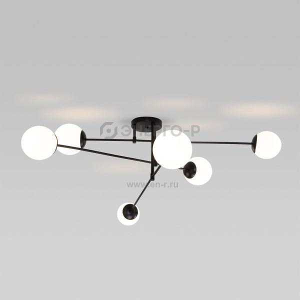 Люстра Netz станет ярким элементом в интерьере, который будет притягивать внимание благодаря своему асимметричному дизайну. Утонченная конструкция объединяет в себе шесть белых сферических плафонов, которые закреплены на черном металлическом каркасе. В модели используются сменные лампы с цоколем E27. Минималистичный стиль потолочного светильника Netz отлично дополнит современный интерьер кухни, гостиной или спальни.