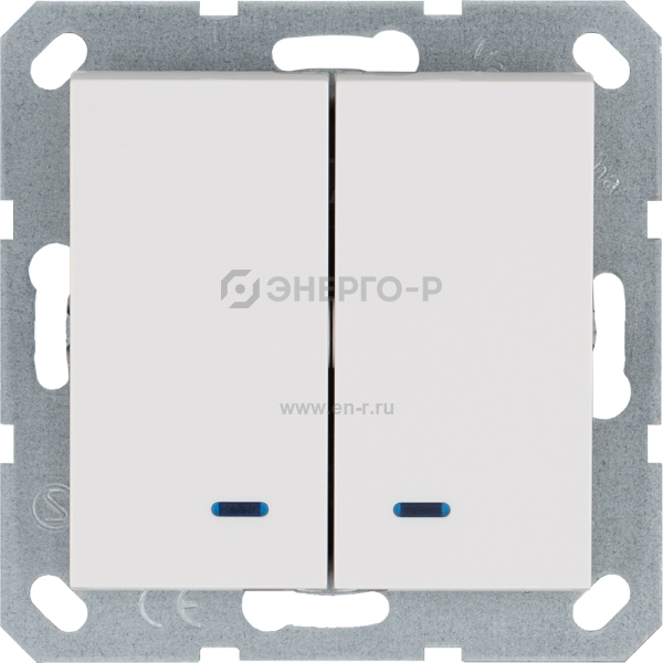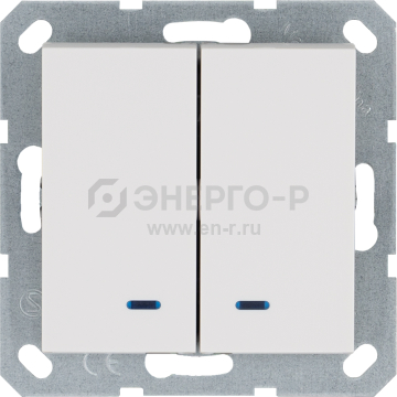 Выключатель с подсветкой 2-клавишный 10A 250В (Белый глянцевый)